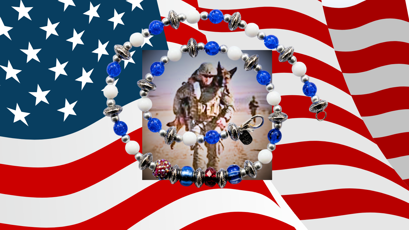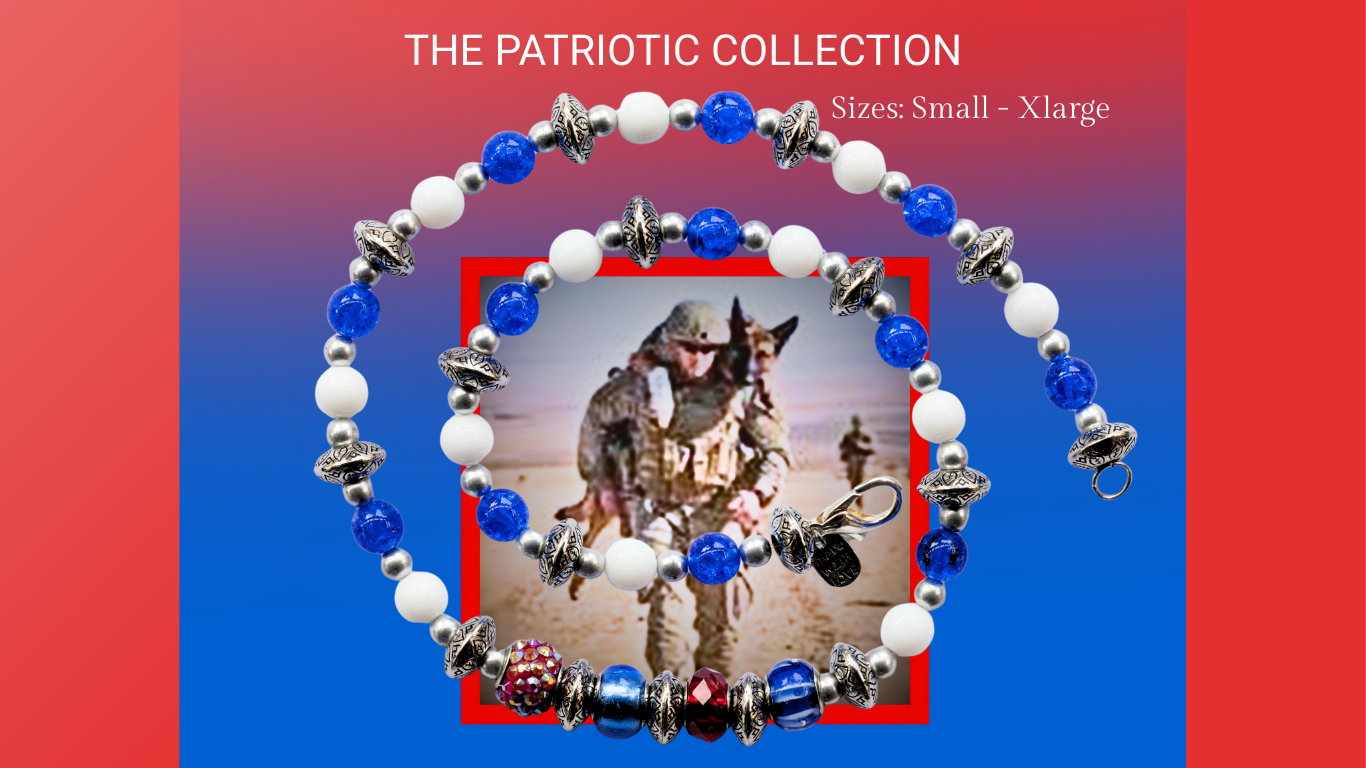 Patriotic Collection-Red Egyptian Pave Bead, Blue Glass Beads, and White Glass Beads, Charms S-XXL