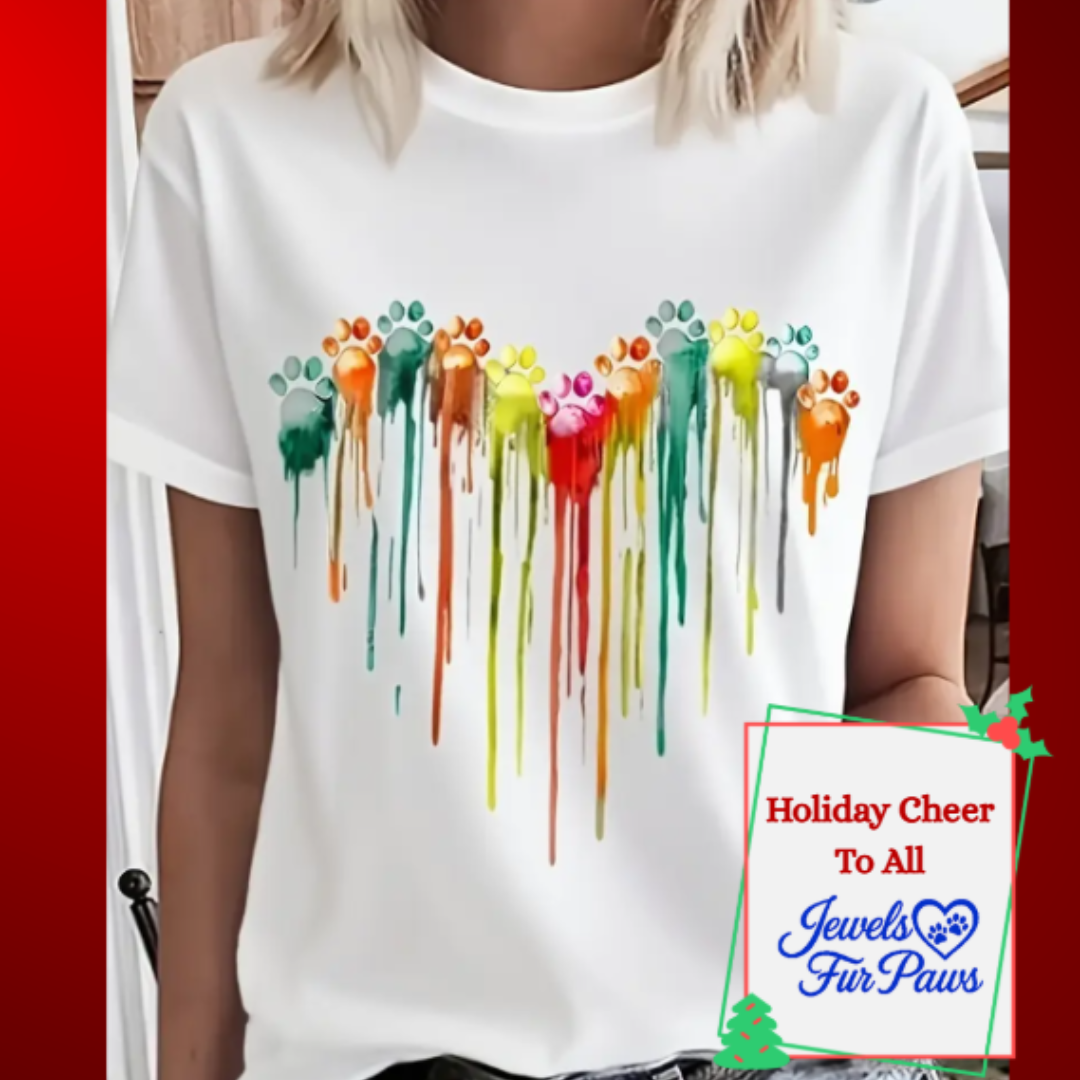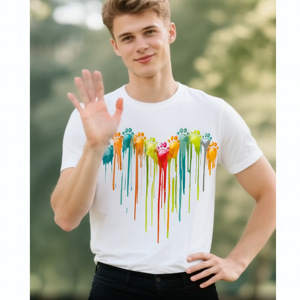 Make a bold, colorful statement with this Dripping Paint Heart & Paw Print T-Shirt designed for pet lovers, color lovers, and anyone who loves playful fashion! 🐾