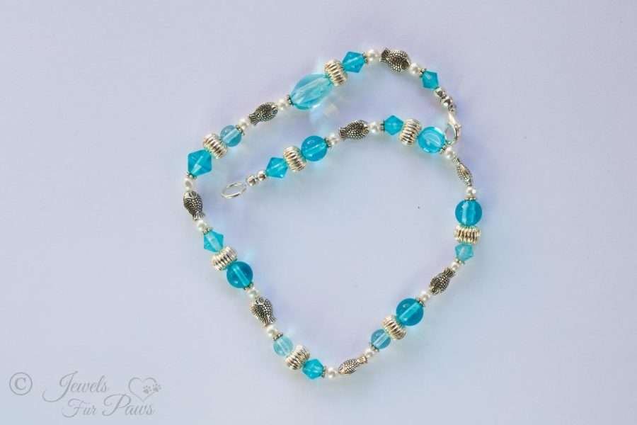 Measuring approximately 13 inches, this necklace is purrfect for your Bichons, Terriers, Beagles, and fur babies alike! *Paws and check out the rest of our series featuring fun fish spacers like this piece!