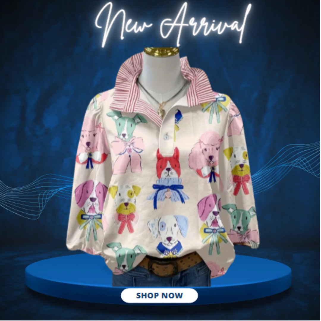 Add a touch of charm and comfort to your wardrobe with this women’s dog print striped blouse! 🐶💖